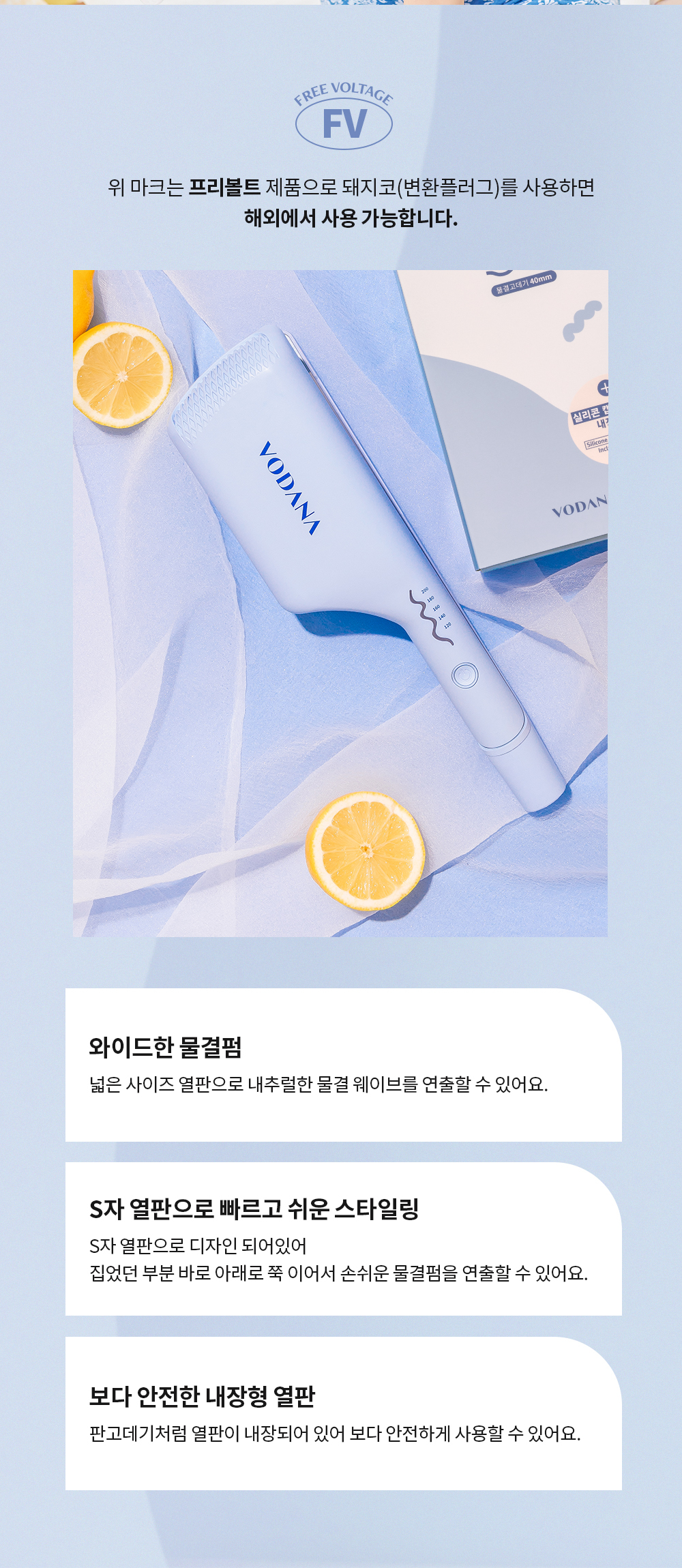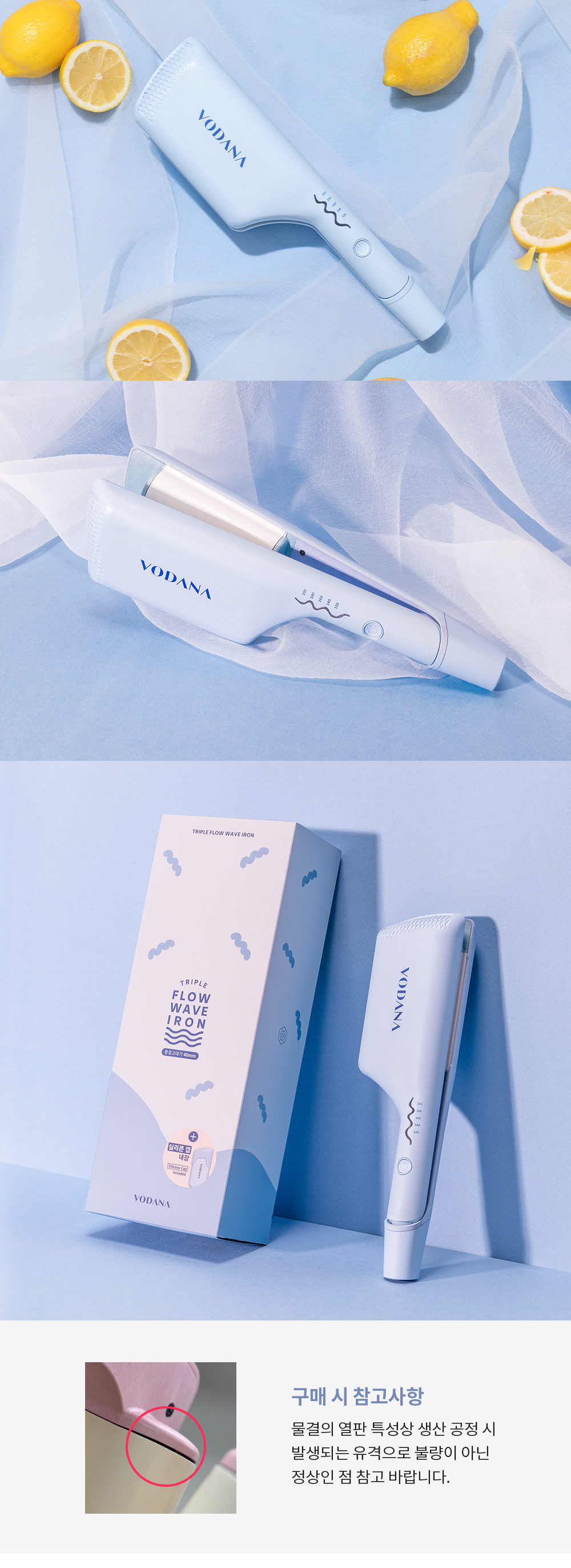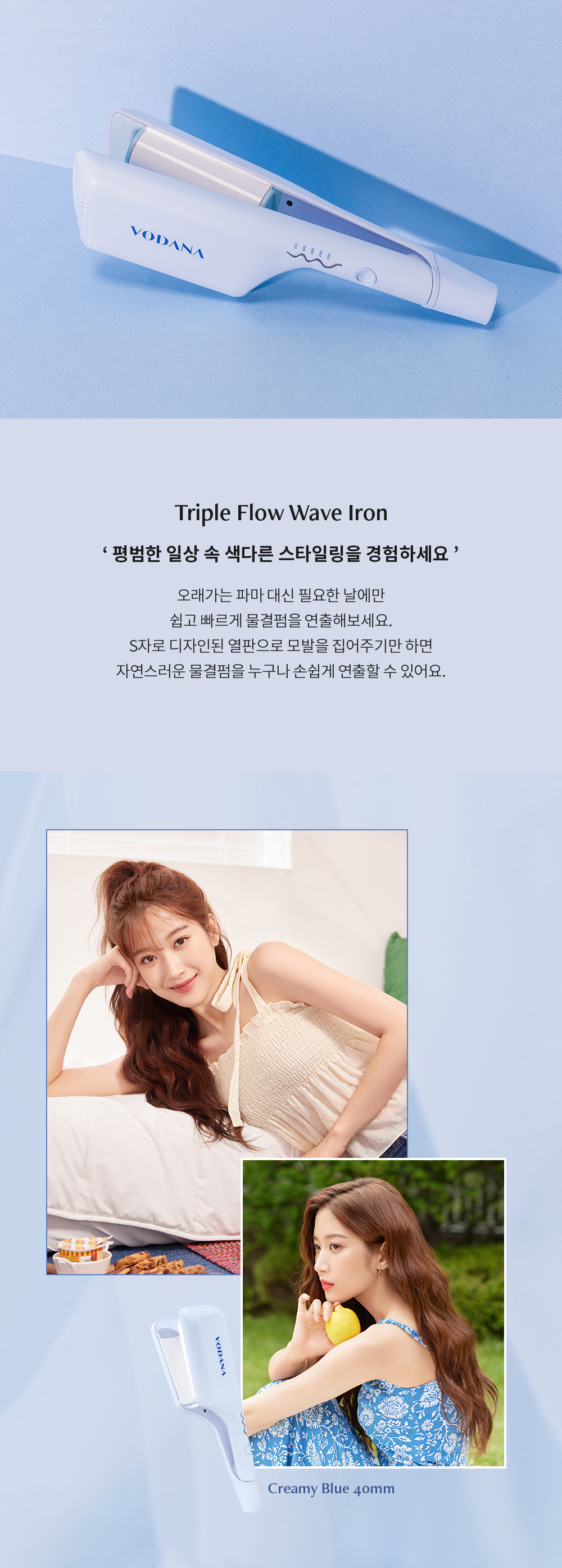 [ VODANA ] Triple Flow Wave Iron 40mm #Creamy Blue