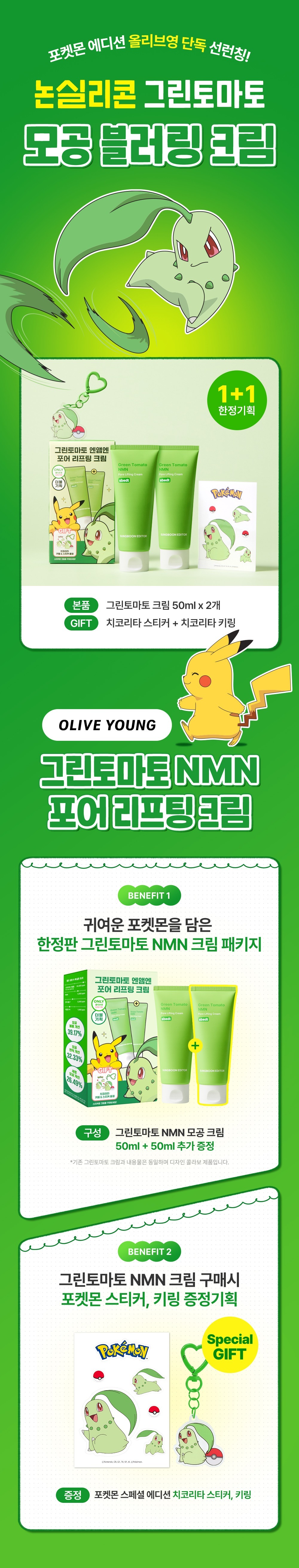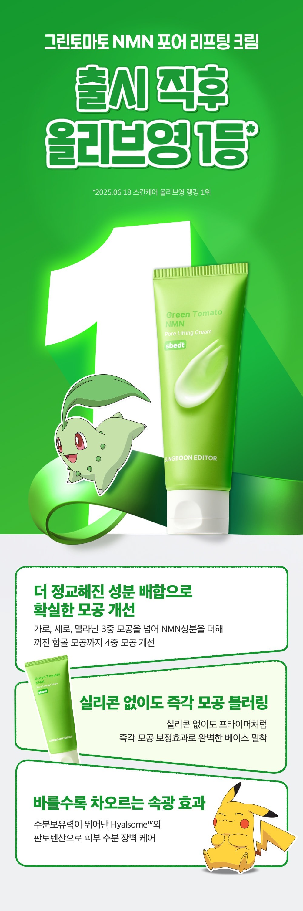 SUNGBOON EDITOR x Pokemon - Green Tomato NMN Pore Lifting Cream 50ml